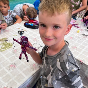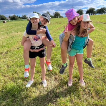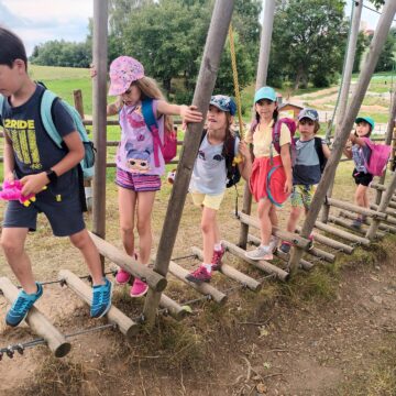 Hned u penzionu je k tomu určené hřiště, které hojně využíváme. Součástí programu je celodenní výlet po okolí – často zavítáme k rybníku nebo koupaliště, kde si děti užijí vodní radovánky! A pro jistotu máme malý bazén hned u penzionu, abychom se v horkých prázdninových dnech mohli s dětmi v přestávkách osvěžit.